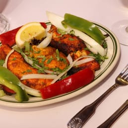 I came here for a late lunch on Saturday. We were seated very quickly. The design of this restaurant is just so pretty with all the natural lighting it gets. My friend and I ordered a Tandoori Chicken, a Fish Vindaloo, rice, 2 orders of Garlic Naan, and 2 Mango Lassi. I want to start off by saying the Mango Lassi was amazing! It was so enriched with the mango flavor, that it paired perfectly well with the yogurt they use. It was a perfect sweet treat! The Tandoori Chicken came out sizzling hot with a bunch of grilled sweet onions that filled the room, and it was so tender, juicy, and flavor-packed. The Fish Vindaloo was great, but was very surprised they used salmon as the fish. The Garlic Naan was amazing as always! I loved my time here! I would recommend people to check this place out! It's a very nice ambient restaurant:)
